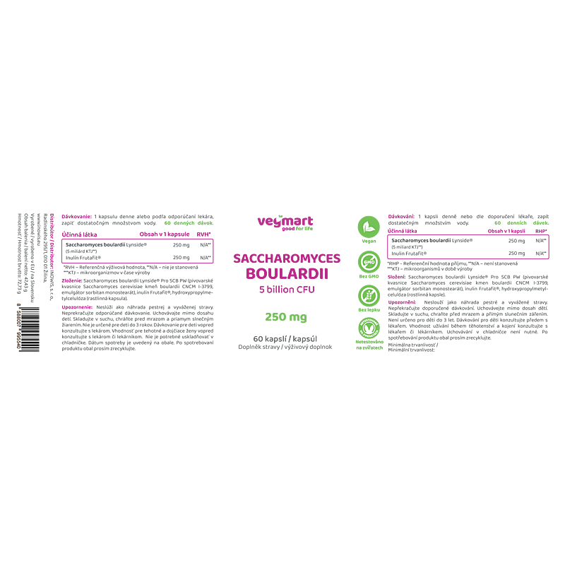 | Originální název výrobce: | Saccharomyces Boulardii 250 mg |